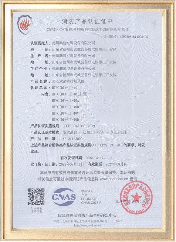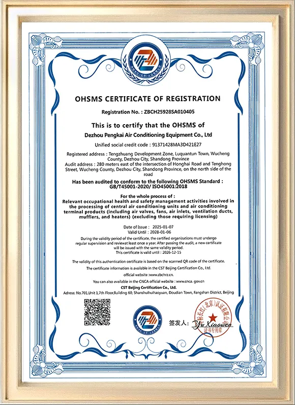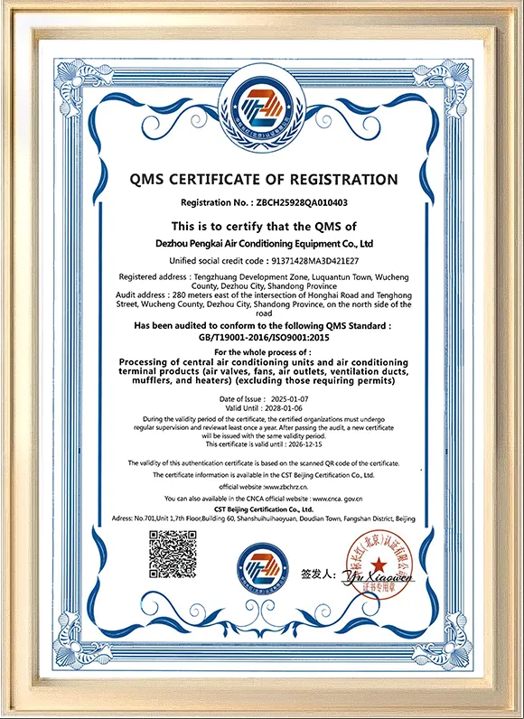 Dezhou Pengkai Air Conditioning Equipment Co., Ltd. is located in Dezhou City, Shandong Province, integrating research and development, production, sales, installation, and after-sales service. Main products include centrifugal fans, smoke exhaust fans, dampers, fan coil units, cooling towers, water tanks, and related HVAC systems. Holding ISO 9001 certification with products compliant with CE standards, Pengkai has served customers across Southeast Asia, the Middle East, Europe, and Africa. With full import and export registration and proximity to major ports, the company offers OEM and ODM services with efficient global delivery.